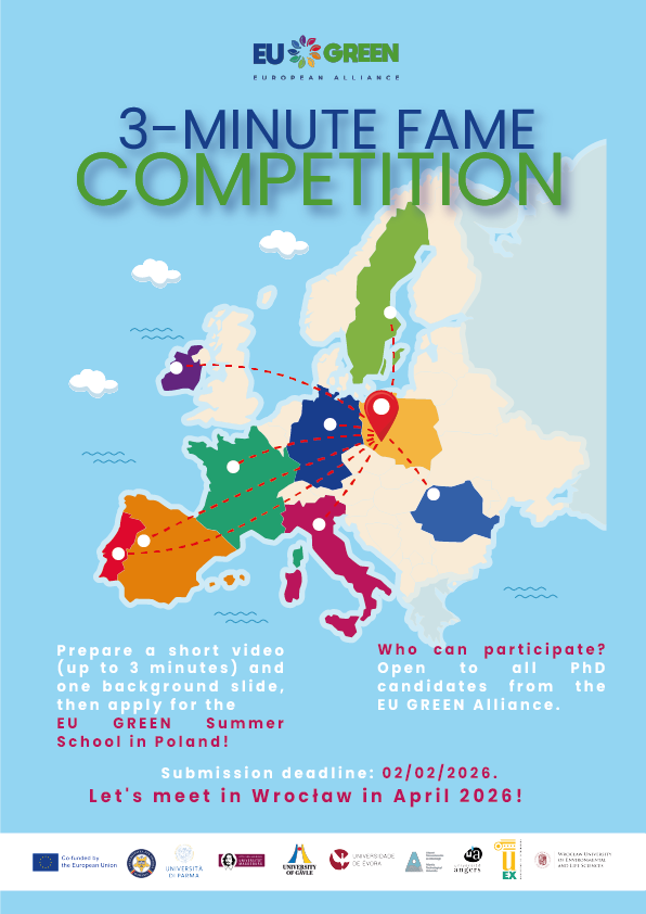 - The top 3 winners of each university will present their work at the 2026 EU GREEN PhD Summer School in Wrocław / Poland in April 2026
